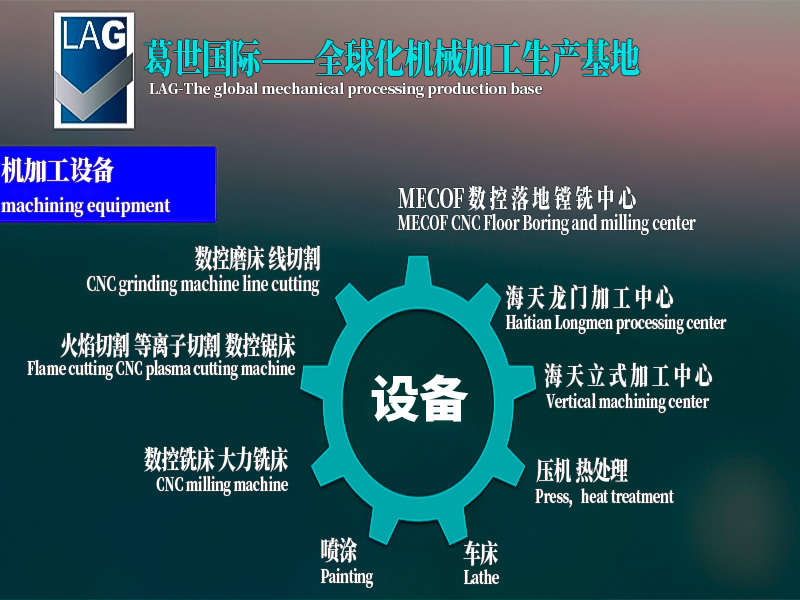 山東嘉意機(jī)械有限公司配置有國內(nèi)外前列的機(jī)械加工母機(jī),其中意大利MECOF 360° 旋轉(zhuǎn)頭、5軸聯(lián)動(dòng)落地鏜銑加工中 心3臺(tái);配置360°側(cè)銑頭5軸龍門加工中 心6臺(tái);立式加工中 心10余臺(tái);配套的數(shù)控車床、銑床、磨床、線切割、大力銑床、火焰切割、等離子切割機(jī)、大型壓力機(jī)、正火爐等國際前列加工母機(jī)70余臺(tái)套。生產(chǎn)國際前列水準(zhǔn)的數(shù)控折彎機(jī)、剪板機(jī)、數(shù)控沖床等鈑金加工設(shè)備,打造葛世國際技術(shù)品牌。